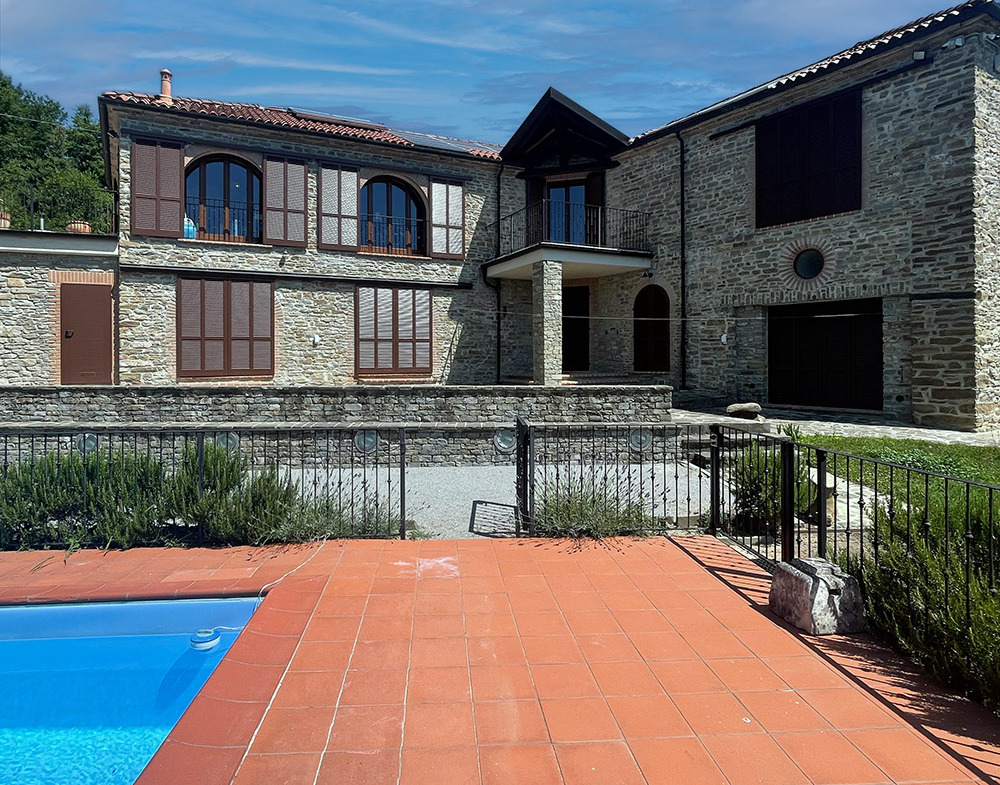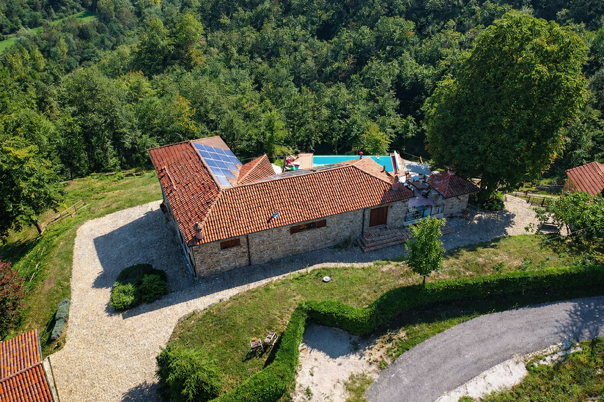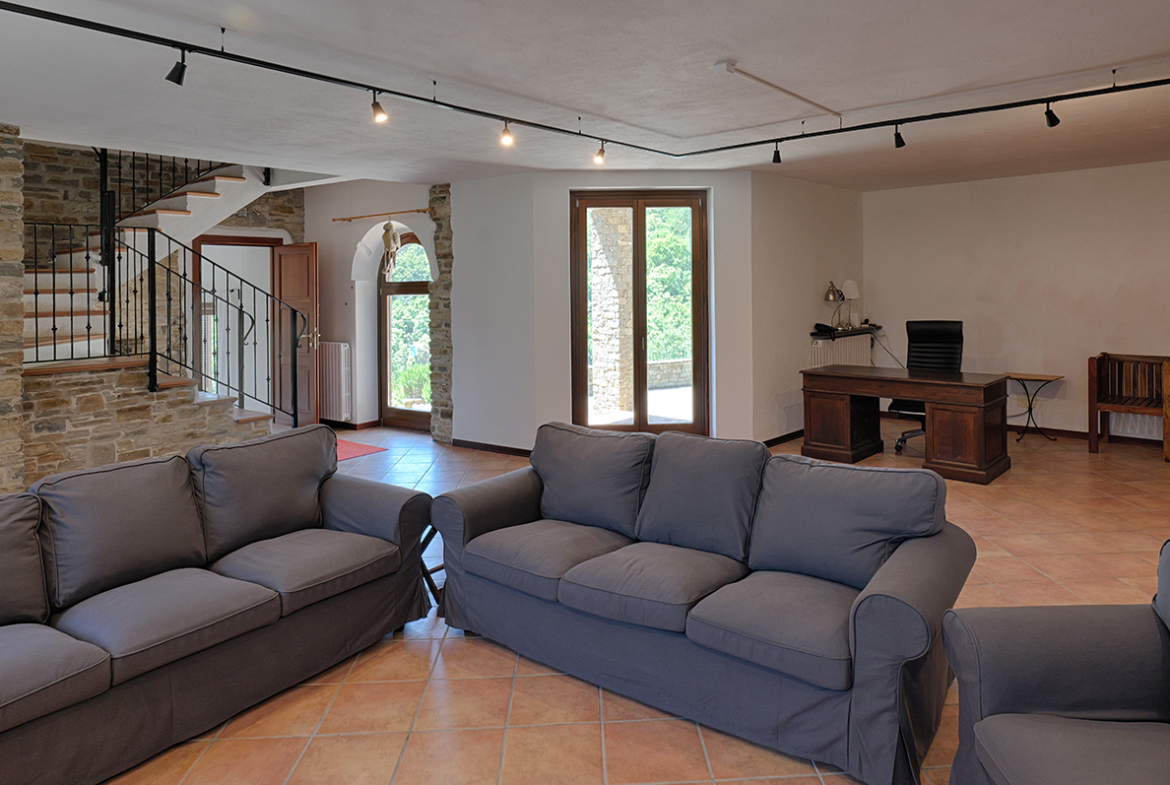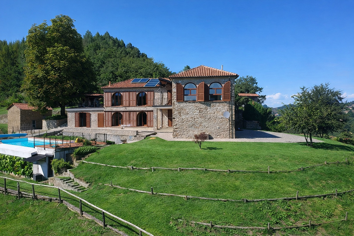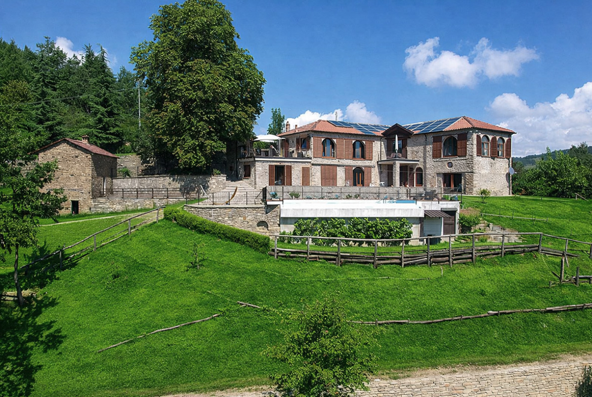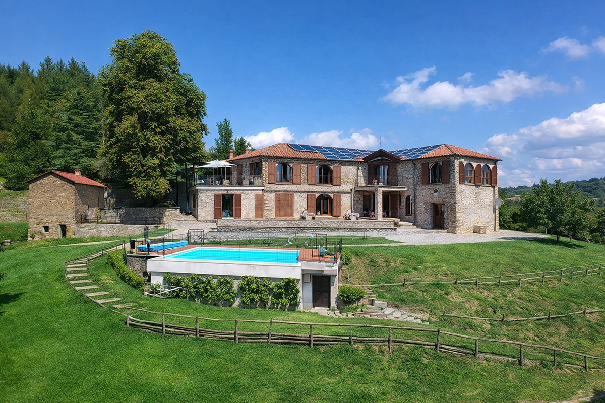 Deliziosa tenuta di campagna in posizione ricercata con facile accesso alle Langhe e alla Riviera Ligure, adatta come residenza permanente, casa vacanze di lusso con ottimo potenziale di locazione o per un’attività commerciale su misura. Visita consigliata. Un ingresso privato con cancello si apre su questo lussuoso casale in pietra, restaurato secondo i più alti standard da abili artigiani locali. Si tratta di una splendida proprietà, ristrutturata utilizzando solo materiali di altissima qualità e con grande attenzione sia all’isolamento che all’efficienza energetica. La proprietà presenta soffitti in legno e mattoni, pareti in pietra a vista, alti soffitti con travi in legno e splendide grandi finestre ad arco che catturano la bellezza del paesaggio circostante. Il risultato è un delizioso mix di casa in pietra con un elegante open space contemporaneo e spazioso. Gode di una posizione favolosa, riservata ma non isolata, e merita davvero di essere vista per essere apprezzata appieno. Elegante e spazioso soggiorno open space, sala da pranzo e cucina, questa zona offre uno spazio molto ampio e luminoso con finestre panoramiche ad arco che si affacciano sulla splendida vista, sui giardini e sulla piscina. Le caratteristiche includono un alto soffitto con travi in legno, un camino caratteristico, due unità di aria condizionata e ventilatori Hunter per mantenere l’ambiente fresco nei mesi estivi. La cucina è di altissima qualità e include piani di lavoro in granito, una stufa Aga e elettrodomestici Miele. La zona cucina si affaccia su un’ampia terrazza, perfetta come salotto estivo all’aperto, area barbecue per cene all’aperto e godersi lo stile di vita italiano all’aria aperta. Ogni stanza della casa gode del paesaggio panoramico che circonda la proprietà. Suite con camera da letto principale – bagno privato con doccia di grandi dimensioni. Cabina armadio/spogliatoio La camera da letto principale è dotata di aria condizionata, alti soffitti con travi in legno e ampie finestre ad arco con vista sul parco. Camera da letto 2 – spaziosa camera matrimoniale con soffitto in legno a vista e aria condizionata. Bagno di lusso 2 – con doccia di grandi dimensioni Utile ripostiglio Una caratteristica scala con corrimano realizzata da un fabbro locale conduce dal piano terra. Qui troviamo un ulteriore soggiorno molto spazioso, una luminosa e accogliente stanza con pareti in pietra a vista, camino e accesso al cortile, ai giardini e alla piscina. Camera da letto 3 – Ampia camera matrimoniale con soffitto con travi in legno, un’altra finestra ad arco e accesso al cortile, ai giardini e alla piscina. Bagno privato 3 Camera da letto 4 – Ampia camera matrimoniale con soffitto con travi in legno, un’altra finestra ad arco e accesso al cortile, ai giardini e alla piscina. Bagno privato 4 Lavanderia/Ripostiglio con lavatrice e asciugatrice Miele Accesso esterno a – Studio, Cucina estiva / Camera da letto 5 con pareti in pietra a vista, piano cottura di grandi dimensioni, lavello Franke Bagno 5 con doccia La stanza soprastante è spaziosa e potrebbe facilmente essere trasformata in un mini appartamento con la Camera da letto 5 All’interno della proprietà si trova un ulteriore edificio denominato ”Rustico”, anch’esso molto bello in pietra di Langhe che trasuda carattere, questo edificio potrebbe essere successivamente ristrutturato se necessario La lussuosa piscina a sfioro riscaldata di 12×4 mt gode di una deliziosa vista sulla campagna. La piscina è riscaldata in modo efficiente da una pompa di calore elettrica installata di recente ed è dotata di un nuovo liner con una garanzia di 15 anni e sia la copertura avvolgibile invernale che quella estiva sono state recentemente sostituite. La proprietà si trova in posizione elevata con vista sulla campagna circostante. Il cortile e il parco sono perfettamente curati e dotati di illuminazione esterna e impianto di irrigazione automatico. C’è la possibilità di passeggiare e addentrarsi nel bosco fino al vicino fiume. Il giardino è interessante e organizzato su terrazze di terreno a diversi livelli, sostenute da muri in pietra di Langa. C’è una vasta selezione di piante e alberi maturi, tra cui un acero e un gelso, un orto di erbe aromatiche e alberi di pesco, pero, albicocco, melo e fico. Campo da bocce illuminabile di notte con panchine in pietra per tutta la lunghezza. Pozzo d’acqua naturale. Garage doppio con porta elettrica, più ampio parcheggio aggiuntivo. Allarme interno ed esterno e sistema di telecamere a circuito chiuso con accesso remoto. Ampio impianto di pannelli solari fotovoltaici recentemente aggiornato con un nuovo inverter e tre batterie di accumulo Peimar.
