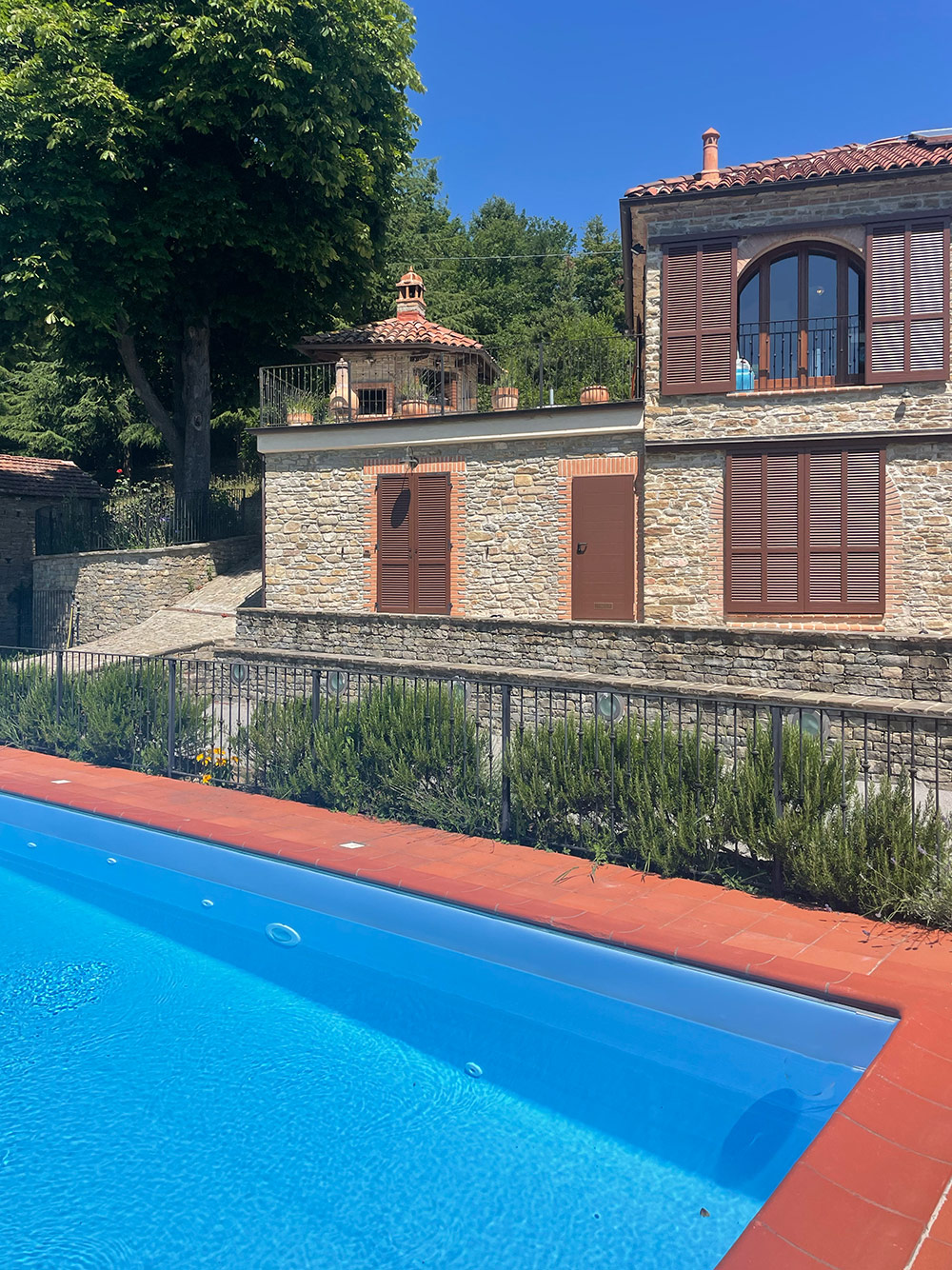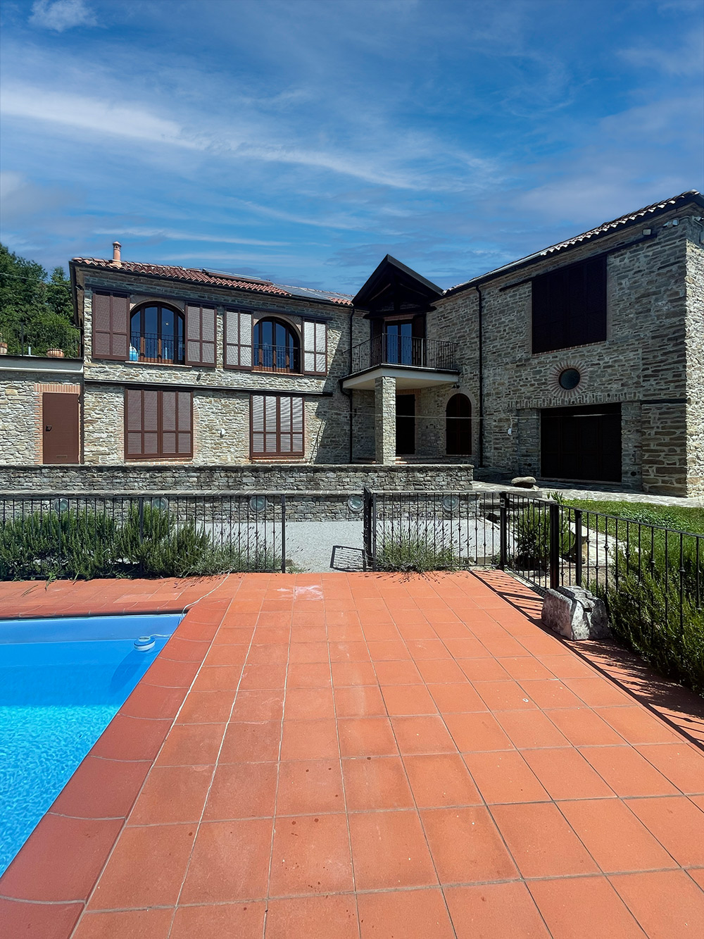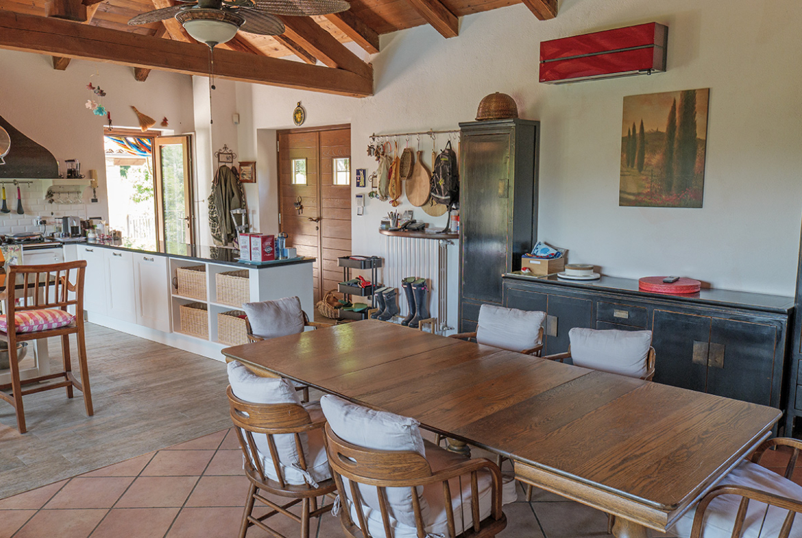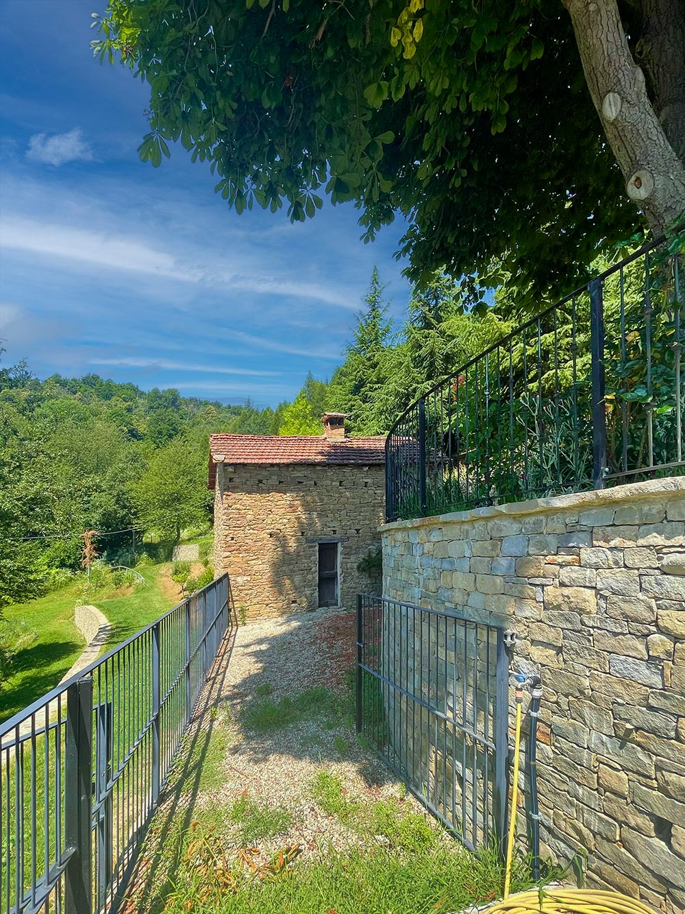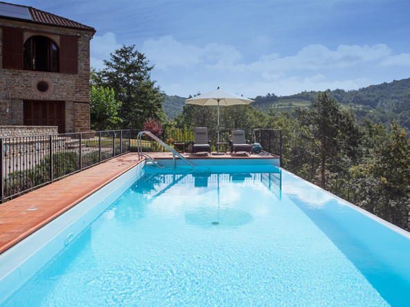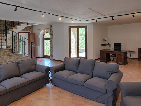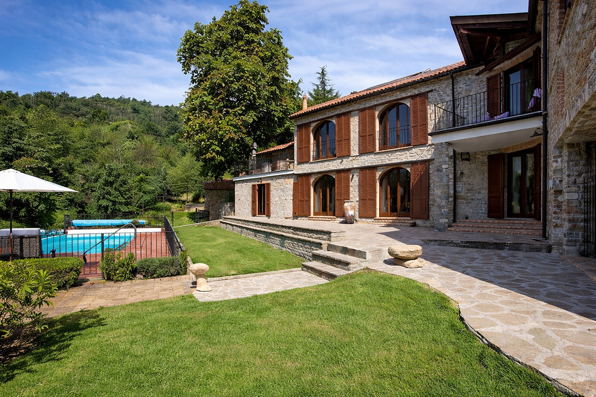 Deliziosa tenuta di campagna in posizione ricercata con facile accesso alle Langhe e alla Riviera Ligure, adatta come residenza permanente, casa vacanze di lusso con ottimo potenziale di locazione o per un’attività commerciale su misura. Visita consigliata. Un ingresso privato con cancello si apre su questo lussuoso casale in pietra, restaurato secondo i più alti standard da abili artigiani locali. Si tratta di una splendida proprietà, ristrutturata utilizzando solo materiali di altissima qualità e con grande attenzione sia all’isolamento che all’efficienza energetica. La proprietà presenta soffitti in legno e mattoni, pareti in pietra a vista, alti soffitti con travi in legno e splendide grandi finestre ad arco che catturano la bellezza del paesaggio circostante. Il risultato è un delizioso mix di casa in pietra con un elegante open space contemporaneo e spazioso. Gode di una posizione favolosa, riservata ma non isolata, e merita davvero di essere vista per essere apprezzata appieno. Elegante e spazioso soggiorno open space, sala da pranzo e cucina, questa zona offre uno spazio molto ampio e luminoso con finestre panoramiche ad arco che si affacciano sulla splendida vista, sui giardini e sulla piscina. Le caratteristiche includono un alto soffitto con travi in legno, un camino caratteristico, due unità di aria condizionata e ventilatori Hunter per mantenere l’ambiente fresco nei mesi estivi. La cucina è di altissima qualità e include piani di lavoro in granito, una stufa Aga e elettrodomestici Miele. La zona cucina si affaccia su un’ampia terrazza, perfetta come salotto estivo all’aperto, area barbecue per cene all’aperto e godersi lo stile di vita italiano all’aria aperta. Ogni stanza della casa gode del paesaggio panoramico che circonda la proprietà. Suite con camera da letto principale – bagno privato con doccia di grandi dimensioni. Cabina armadio/spogliatoio La camera da letto principale è dotata di aria condizionata, alti soffitti con travi in legno e ampie finestre ad arco con vista sul parco. Camera da letto 2 – spaziosa camera matrimoniale con soffitto in legno a vista e aria condizionata. Bagno di lusso 2 – con doccia di grandi dimensioni Utile ripostiglio Una caratteristica scala con corrimano realizzata da un fabbro locale conduce dal piano terra. Qui troviamo un ulteriore soggiorno molto spazioso, una luminosa e accogliente stanza con pareti in pietra a vista, camino e accesso al cortile, ai giardini e alla piscina. Camera da letto 3 – Ampia camera matrimoniale con soffitto con travi in legno, un’altra finestra ad arco e accesso al cortile, ai giardini e alla piscina. Bagno privato 3 Camera da letto 4 – Ampia camera matrimoniale con soffitto con travi in legno, un’altra finestra ad arco e accesso al cortile, ai giardini e alla piscina. Bagno privato 4 Lavanderia/Ripostiglio con lavatrice e asciugatrice Miele Accesso esterno a – Studio, Cucina estiva / Camera da letto 5 con pareti in pietra a vista, piano cottura di grandi dimensioni, lavello Franke Bagno 5 con doccia La stanza soprastante è spaziosa e potrebbe facilmente essere trasformata in un mini appartamento con la Camera da letto 5 All’interno della proprietà si trova un ulteriore edificio denominato ”Rustico”, anch’esso molto bello in pietra di Langhe che trasuda carattere, questo edificio potrebbe essere successivamente ristrutturato se necessario La lussuosa piscina a sfioro riscaldata di 12×4 mt gode di una deliziosa vista sulla campagna. La piscina è riscaldata in modo efficiente da una pompa di calore elettrica installata di recente ed è dotata di un nuovo liner con una garanzia di 15 anni e sia la copertura avvolgibile invernale che quella estiva sono state recentemente sostituite. La proprietà si trova in posizione elevata con vista sulla campagna circostante. Il cortile e il parco sono perfettamente curati e dotati di illuminazione esterna e impianto di irrigazione automatico. C’è la possibilità di passeggiare e addentrarsi nel bosco fino al vicino fiume. Il giardino è interessante e organizzato su terrazze di terreno a diversi livelli, sostenute da muri in pietra di Langa. C’è una vasta selezione di piante e alberi maturi, tra cui un acero e un gelso, un orto di erbe aromatiche e alberi di pesco, pero, albicocco, melo e fico. Campo da bocce illuminabile di notte con panchine in pietra per tutta la lunghezza. Pozzo d’acqua naturale. Garage doppio con porta elettrica, più ampio parcheggio aggiuntivo. Allarme interno ed esterno e sistema di telecamere a circuito chiuso con accesso remoto. Ampio impianto di pannelli solari fotovoltaici recentemente aggiornato con un nuovo inverter e tre batterie di accumulo Peimar.
