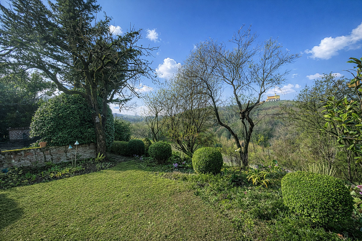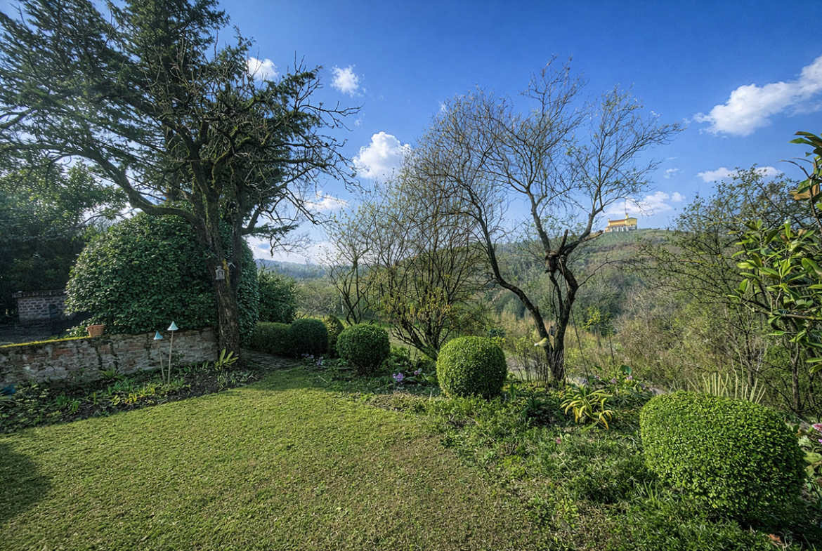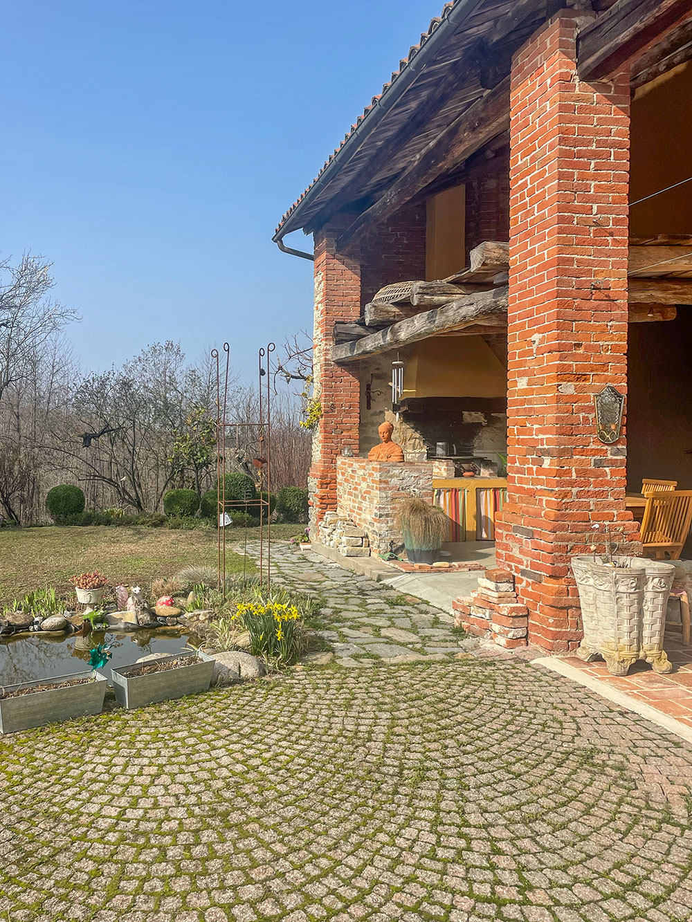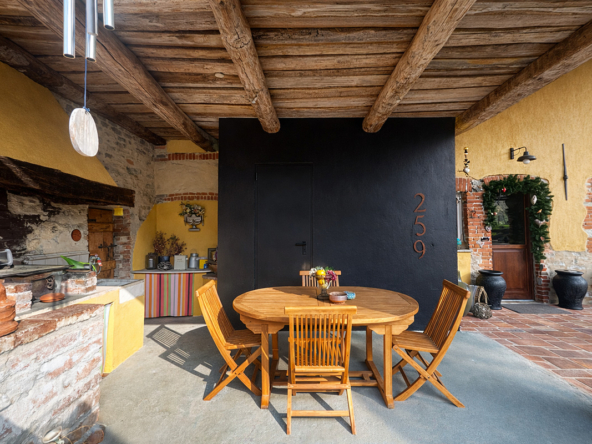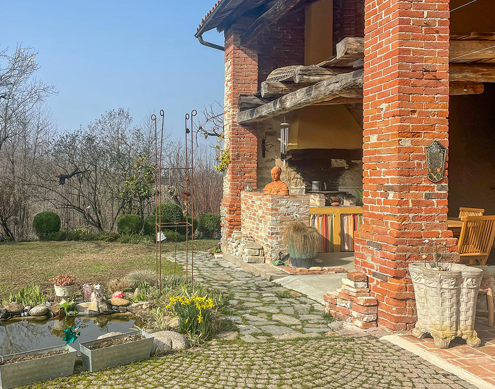 All’esterno, un delizioso portico crea un’accogliente zona relax estiva con zona pranzo, completa di cucina esterna e barbecue: perfetta per intrattenere gli ospiti godendo della bellezza dei giardini e del paesaggio circostante.