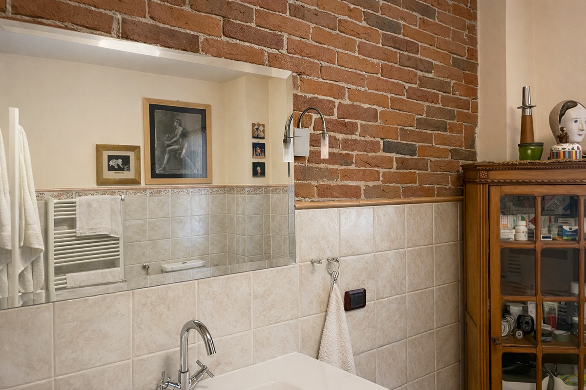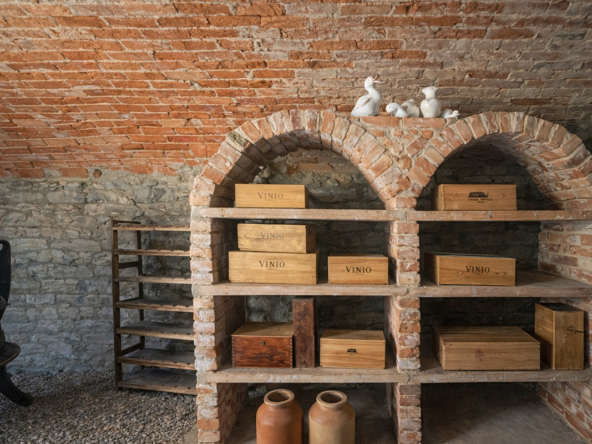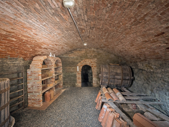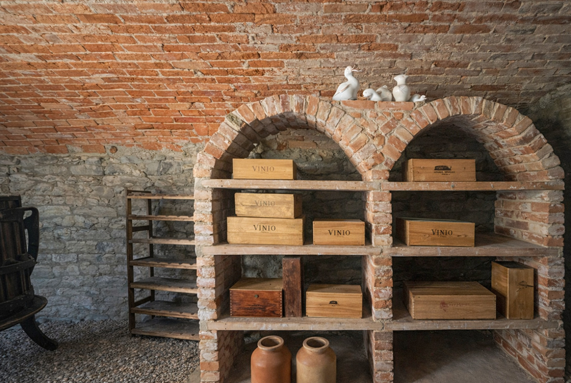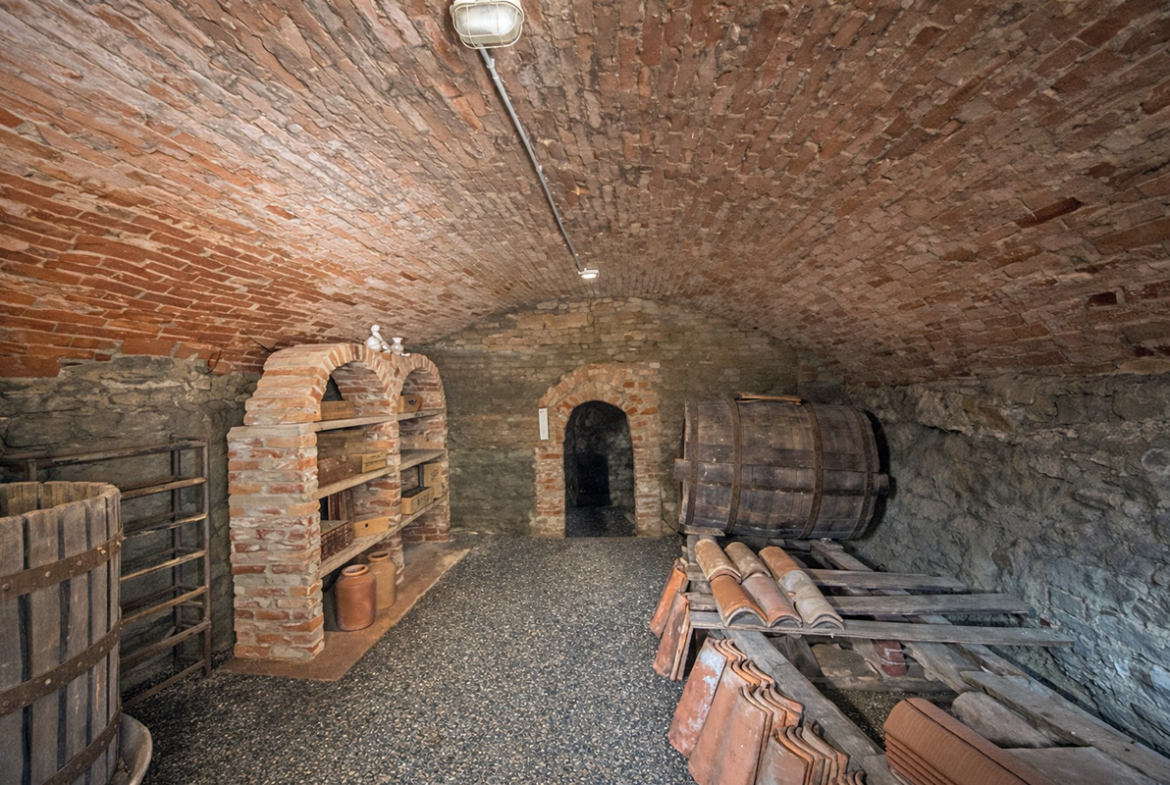 Al piano seminterrato, una scala conduce a un’antica cantina con pareti in mattoni a vista, il luogo ideale per conservare vini pregiati o organizzare degustazioni intime con gli amici.